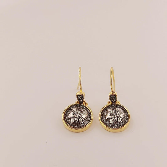 Athena Coin Dangle Earrings: Gold-Plated Greek Jewelry