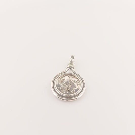 Ancient Greek Athena Silver Pendant, Double-Sided Coin Design, Mythology Jewelry