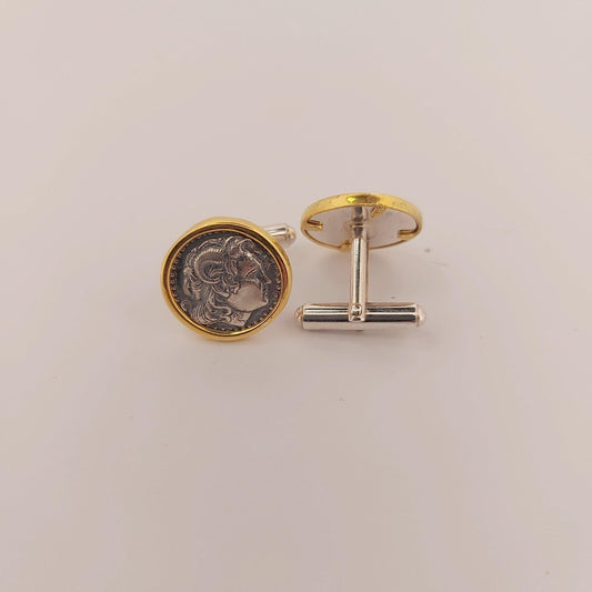 Alexander the Great Coin Cufflinks, Silver and Gold Plated, Greek Historical Design, Greek Coin Cufflinks, Antique Cufflinks,Men's Cufflinks