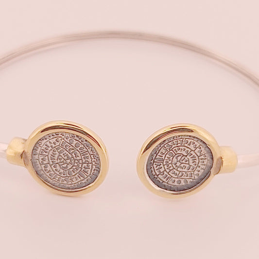 Phaistos Disc Bracelet: Sterling Silver & Gold-Plated Minoan Bangle