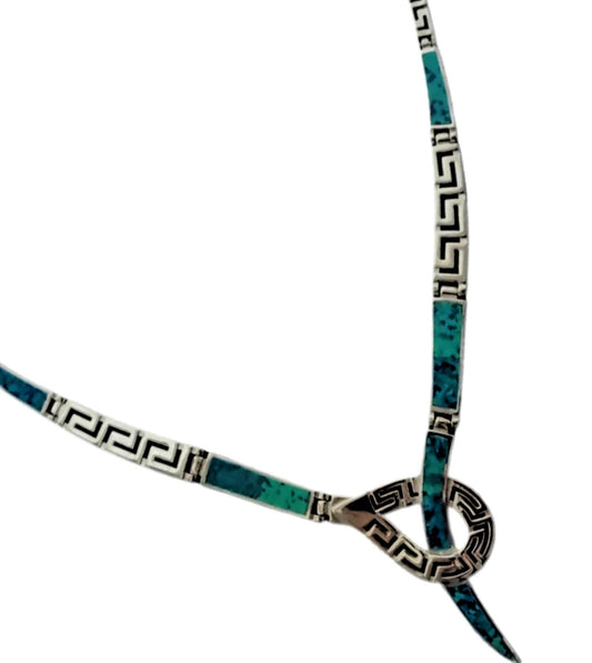 Opal Blue Y-Shaped Necklace, Sterling Silver Pendant