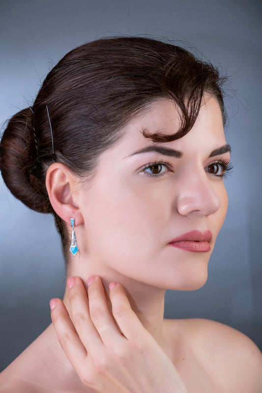 Sterling Silver Blue Opal Dangle Earrings: Greek Design