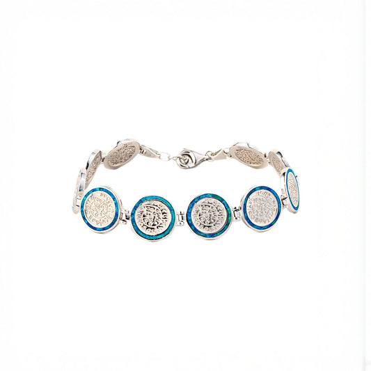 Sterling Silver Phaistos Disc Bracelet: Blue Opal Ancient Greek Jewelry