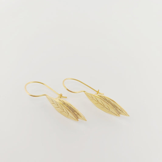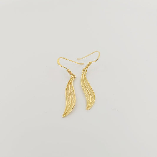 Olive Leaf Dangle Earrings, Gold Plated, Greek Inspired Design