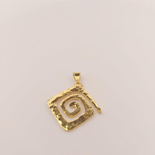 Hammered Gold Plated Silver Pendant: Greek Key Meander Design