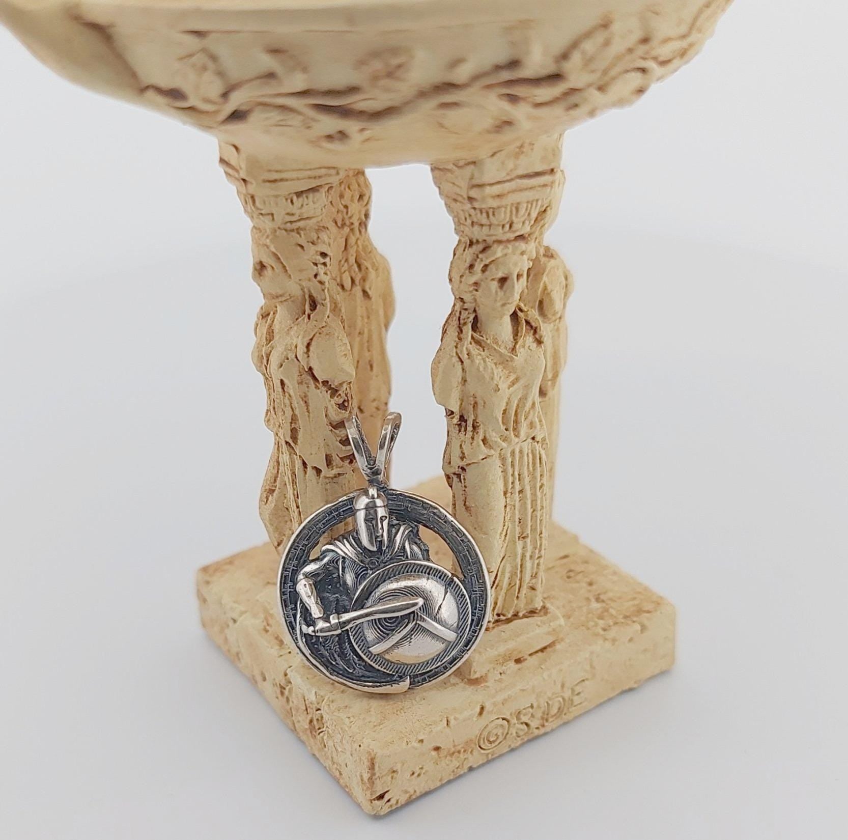 Ancient Greek Spartan Warrior Sterling Silver Pendant, Round Medallion Design