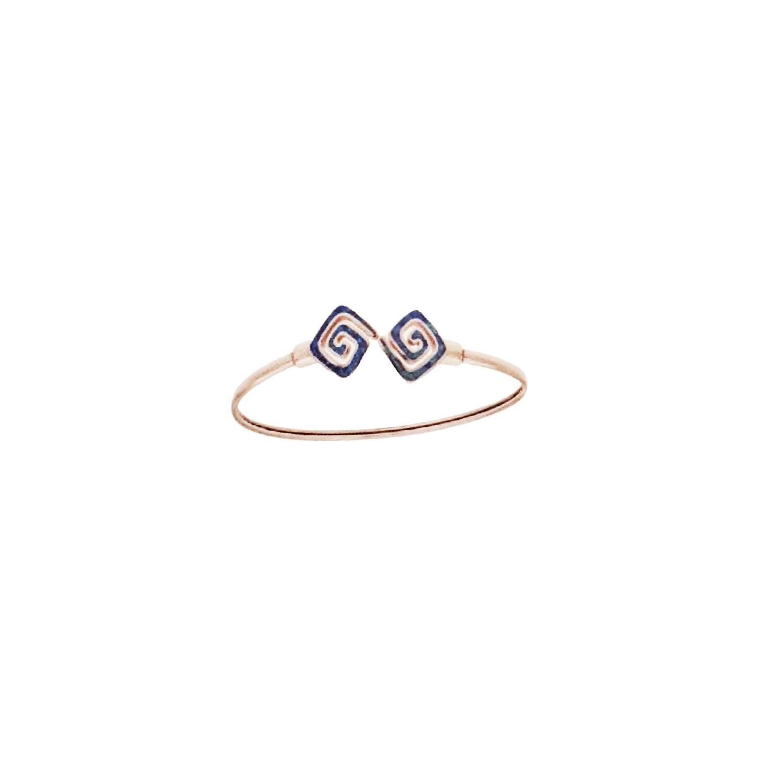 Blue Opal Bangle Bracelet, Silver Square Design, Greek Key Pattern
