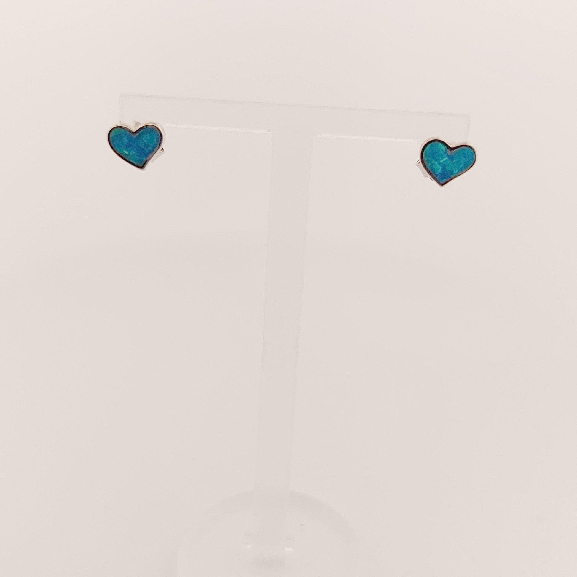 Add a touch of ethereal beauty to your jewelry collection with these delightful heart-shaped stud earrings. Crafted from sterling silver and featuring stunning blue opal inlays, these earrings capture the mesmerizing colors of the Mediterranean Sea.