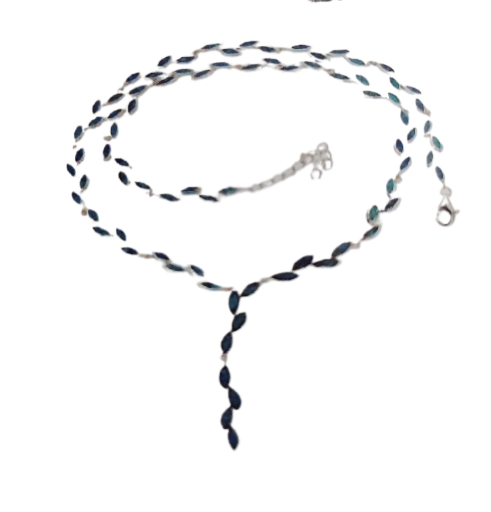 Immerse yourself in the timeless elegance of this Blue Opal Olive Leaves Sterling Silver Necklace, a stunning piece that pays homage to ancient Greek heritage.