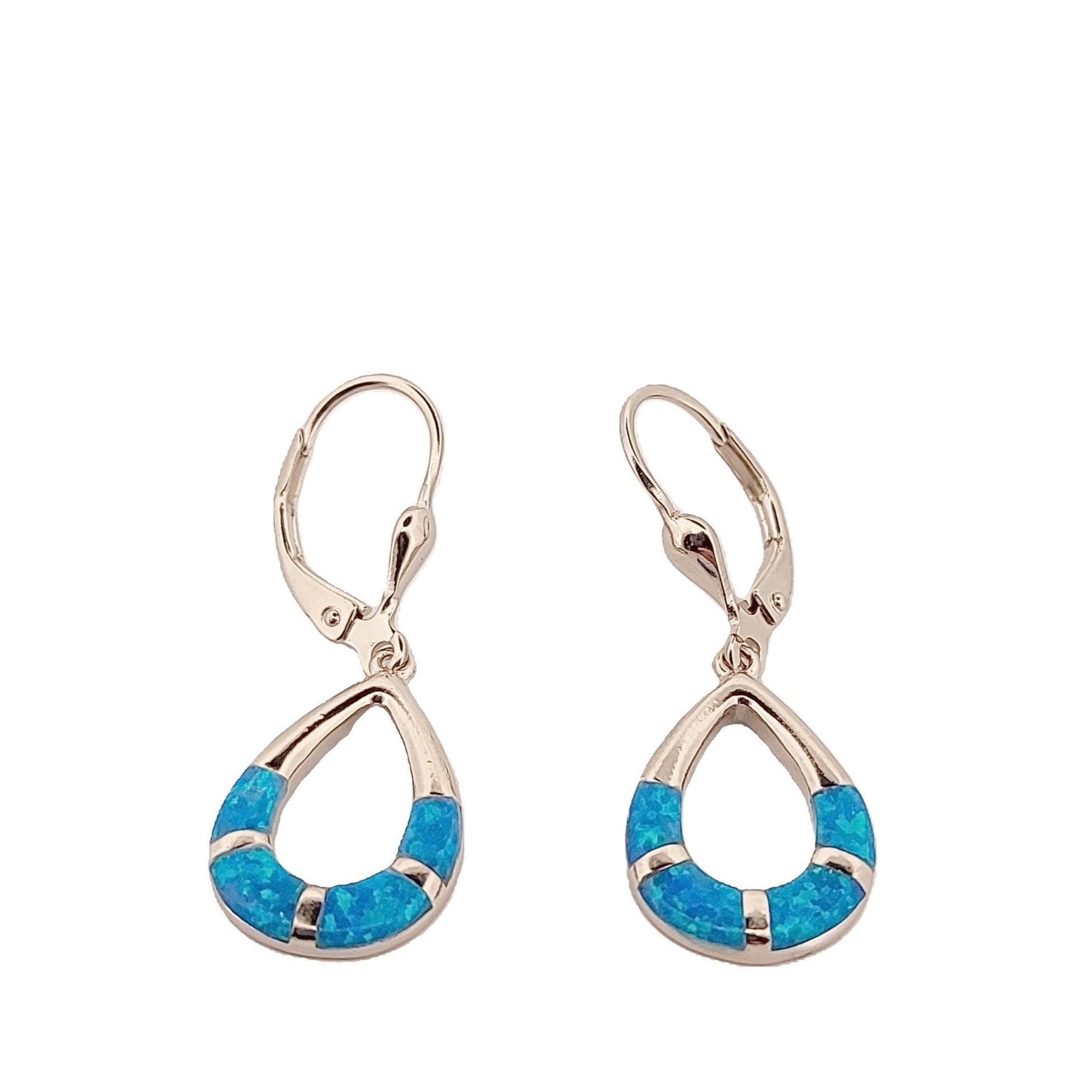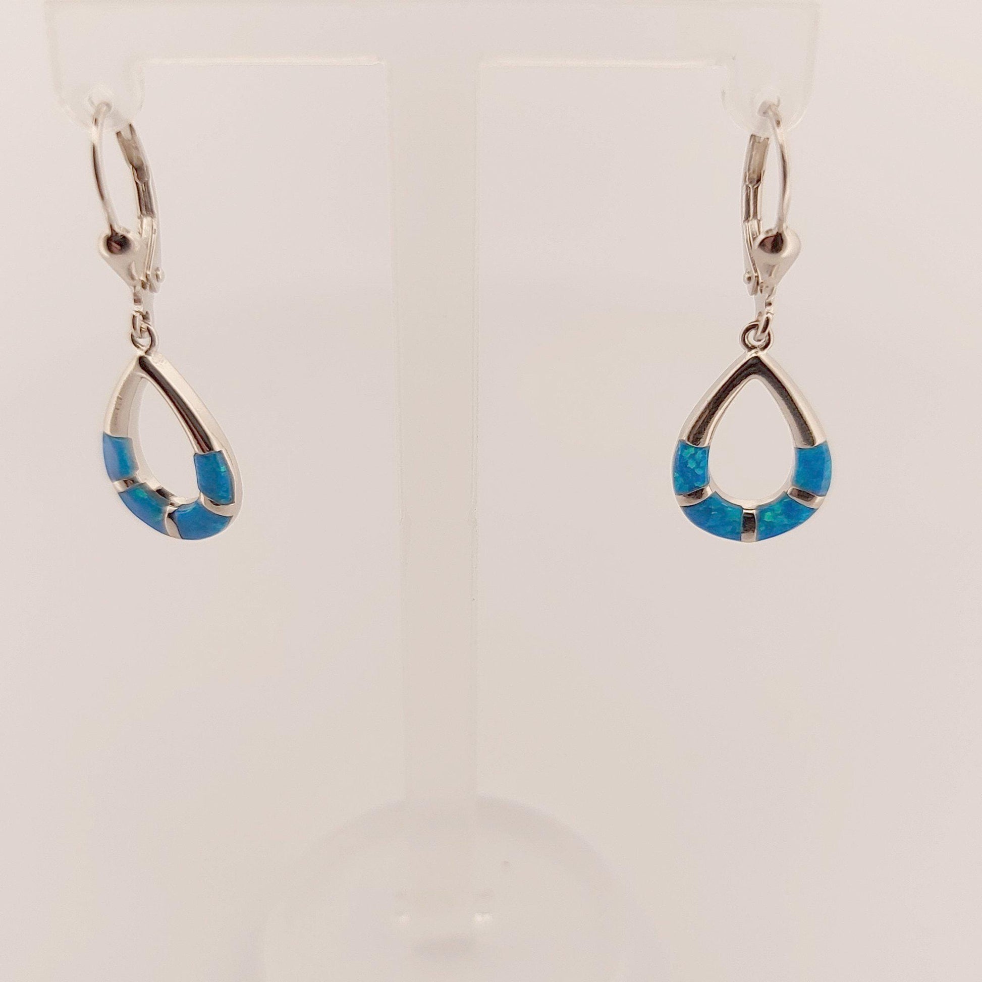 ELEGANT DESIGN: Sterling silver dangle earrings featuring a teardrop shape with inlaid blue opal segments, perfect for casual and dressy occasions