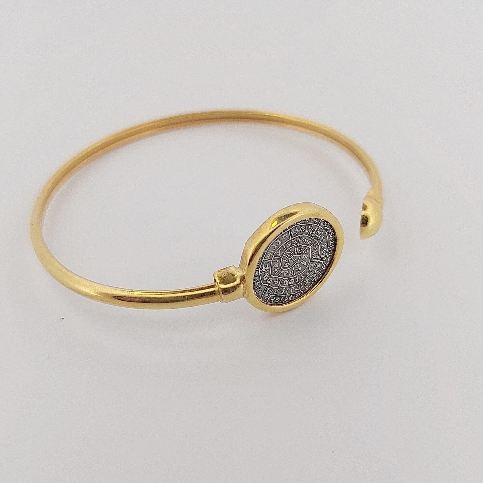 Gold Plated Phaistos Disc Bangle: Ancient Greek Minoan Design