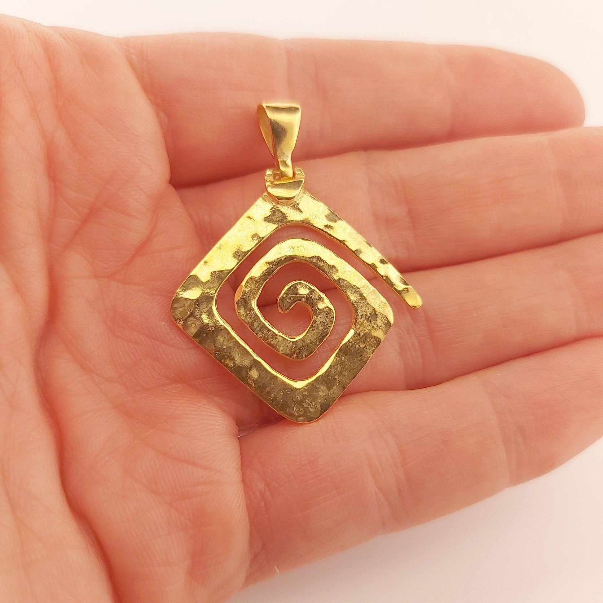 AUTHENTIC DESIGN: Beautifully crafted Greek key symbol pendant featuring a spiral meander pattern with an elegant hammered texture finish