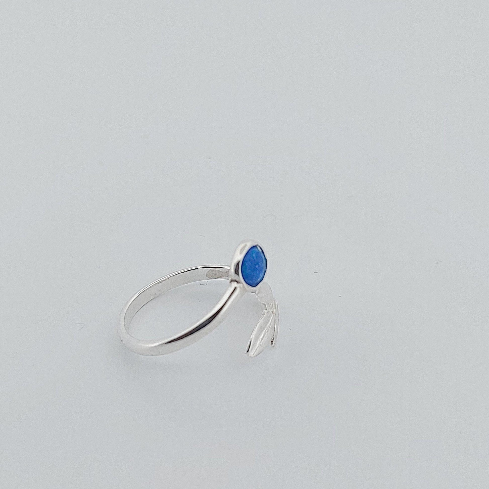Silver Blue Opal Ring with Olive Leaf Design, Greek Collection, 925 Silver