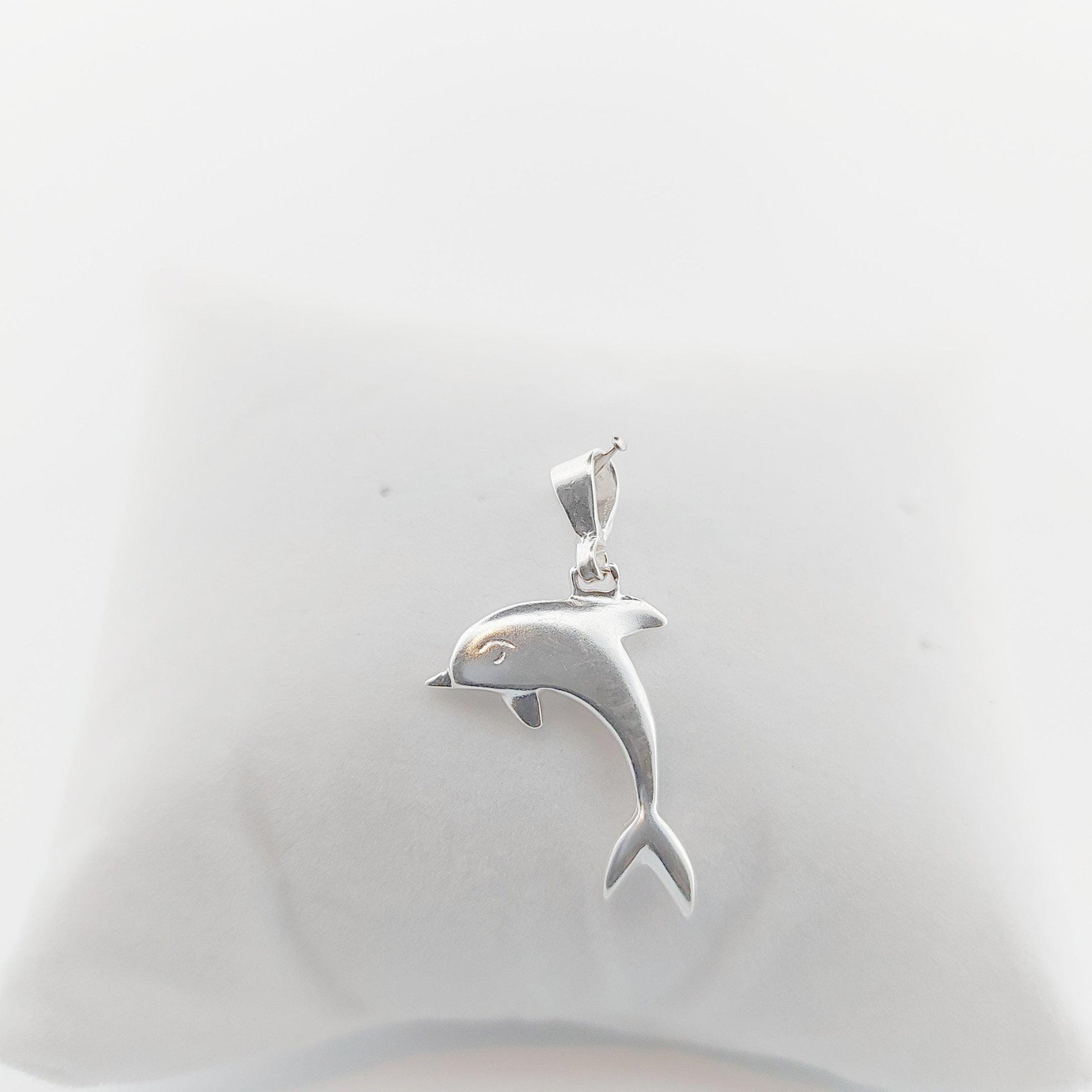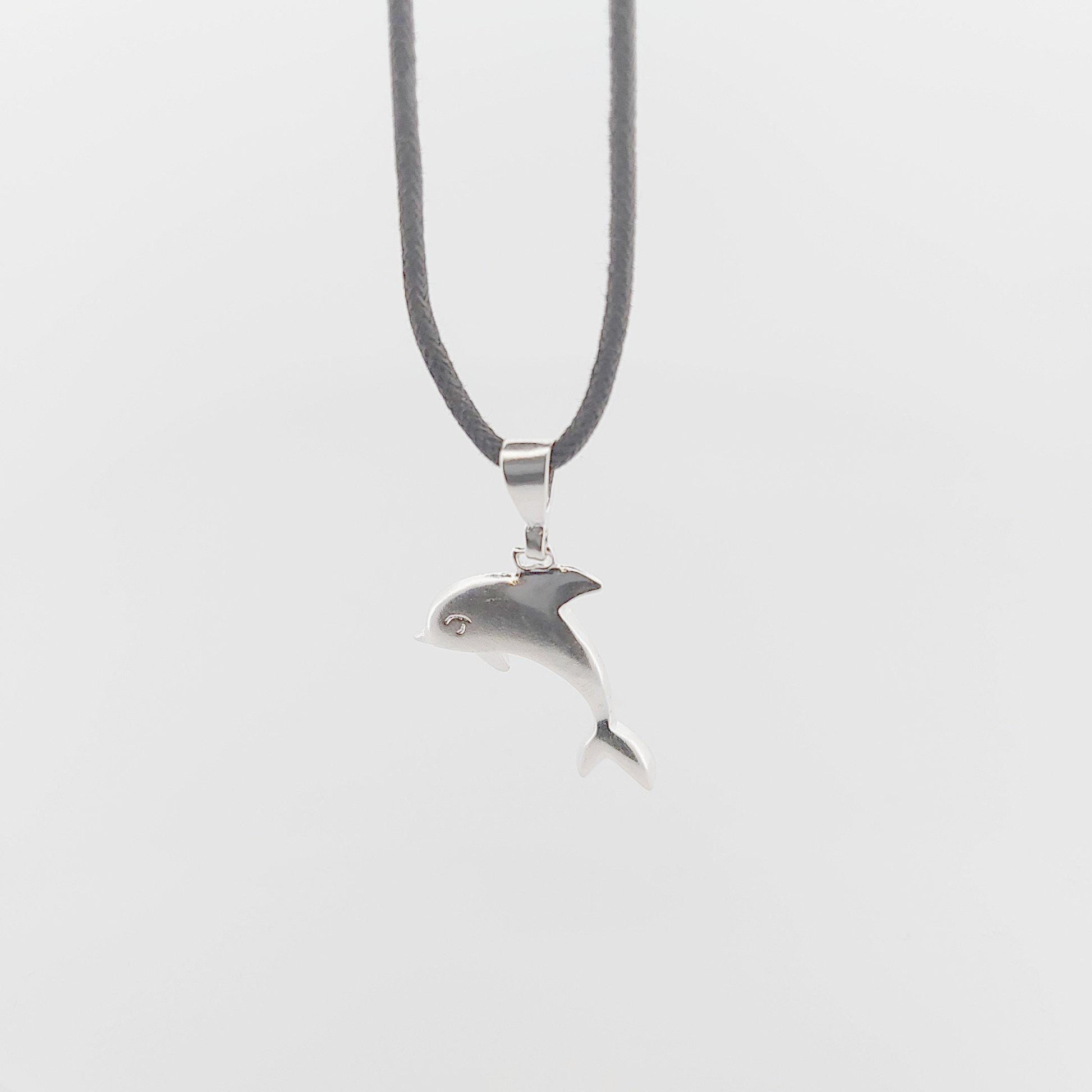 The pendant features a sleek, swimming dolphin design rendered in high-quality sterling silver, showcasing fluid lines and careful attention to detail. The polished silver finish catches light beautifully, creating a subtle shimmer reminiscent of sunlight dancing on ocean waves.