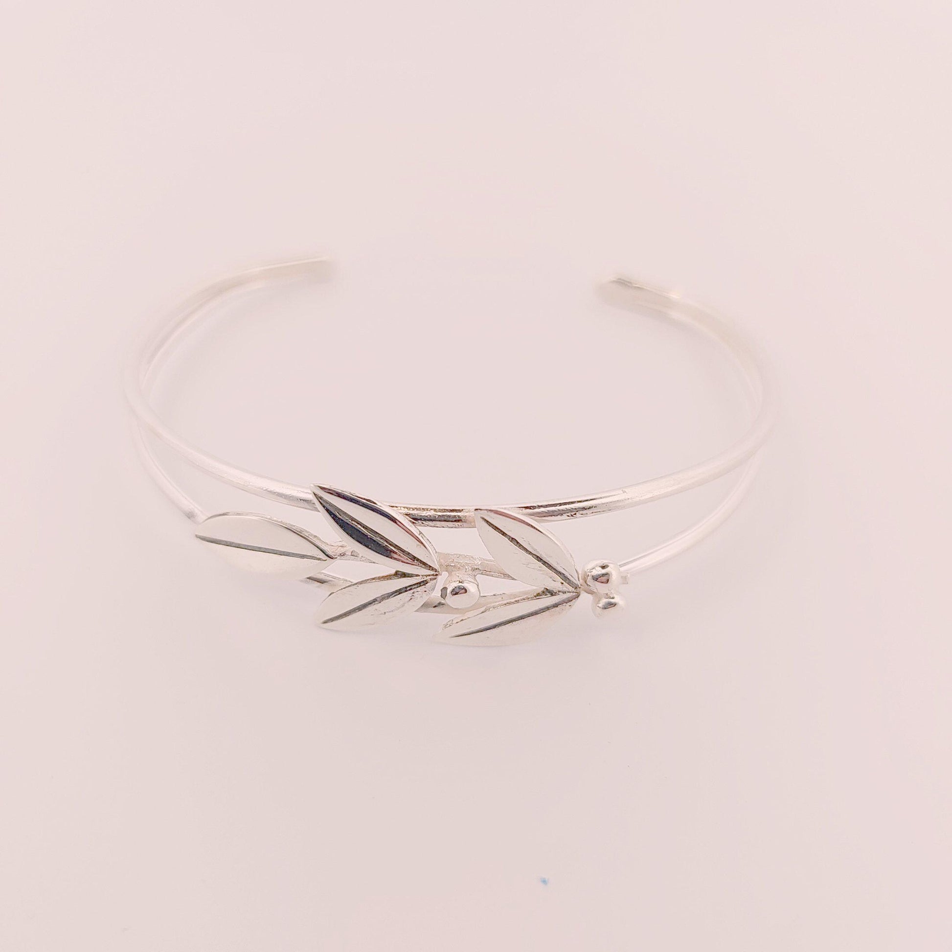Silver Olive Leaf Bracelet: Greek Inspired Dual-Band Cuff