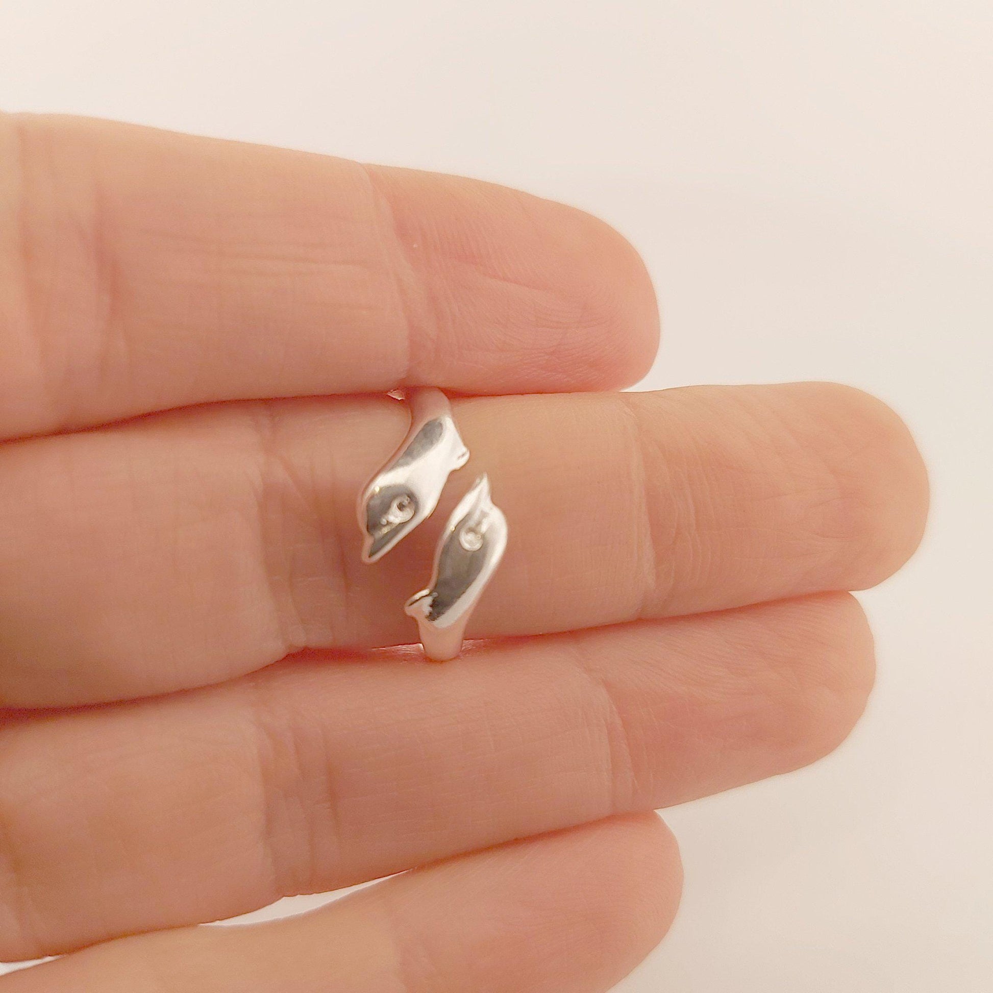 The ring features an elegant dolphin design rendered in high-quality 925 Sterling Silver, creating a sophisticated yet playful aesthetic.