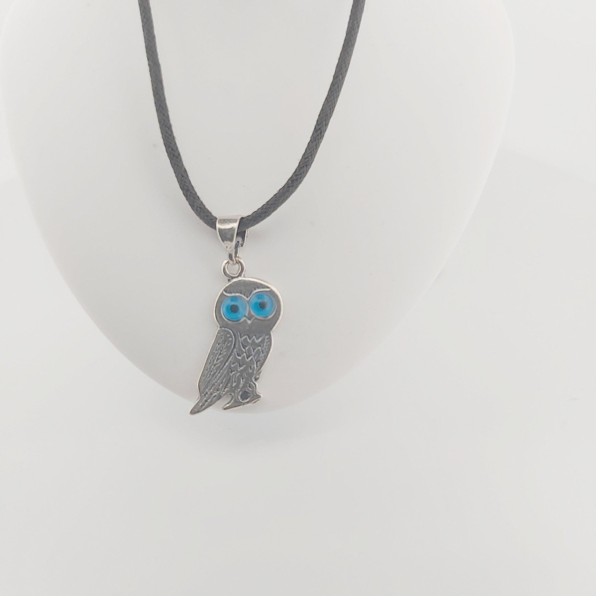 Sterling Silver Greek Owl Pendant: Athena Symbol, Evil Eye