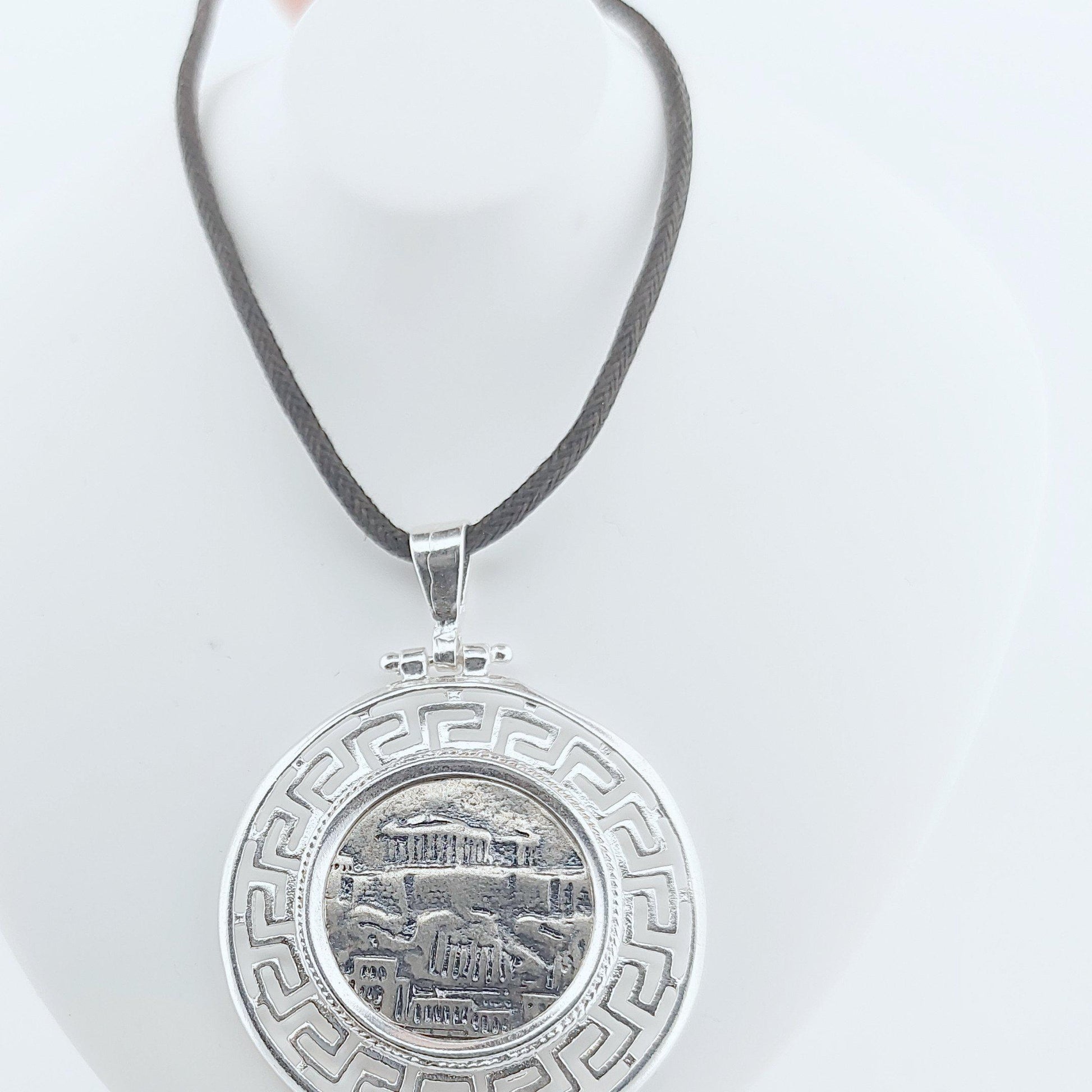 Sterling Silver Greek Pendant: Acropolis & Athenian Owl Coin