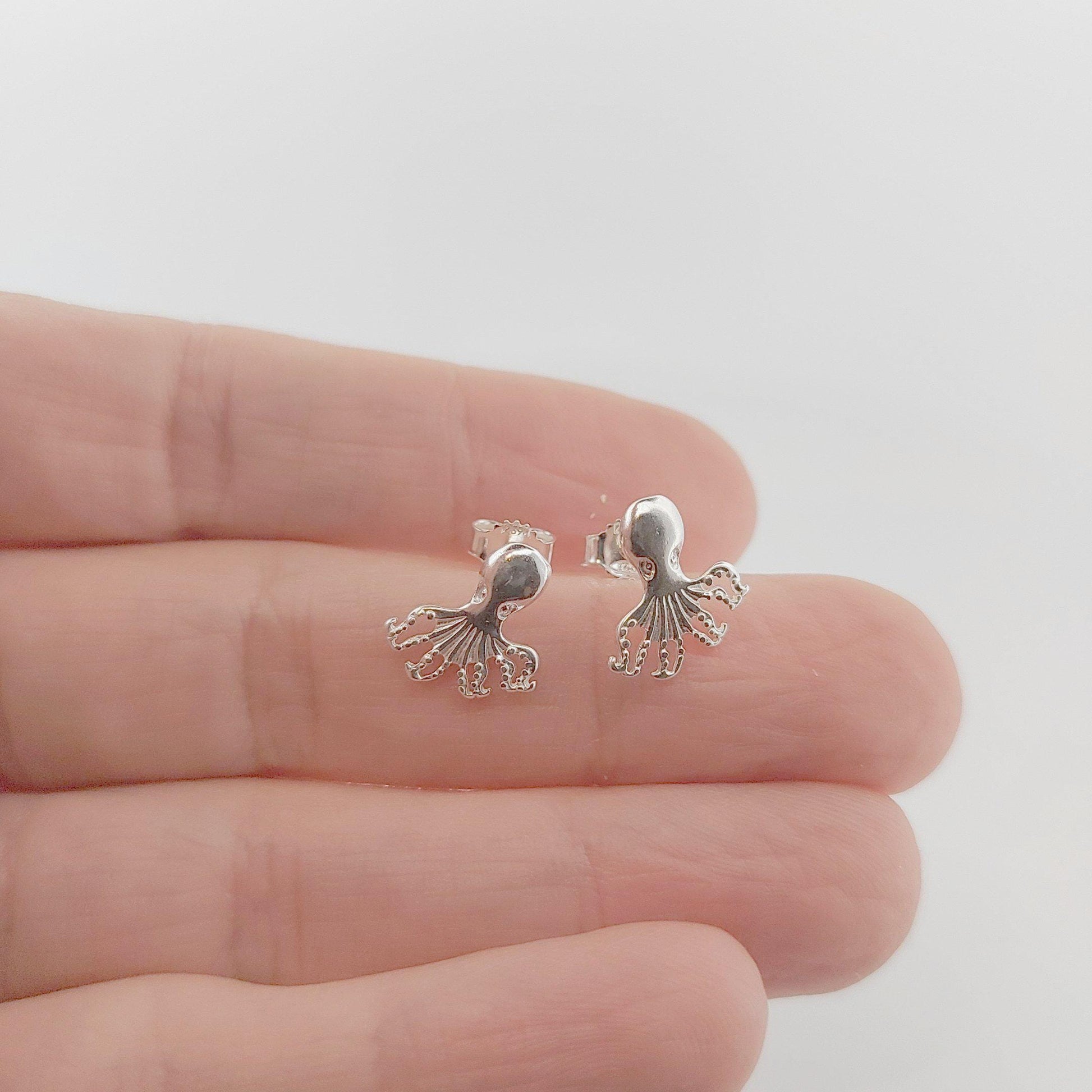 Sterling Silver Octopus Stud Earrings, Greek Mythology Inspired Design