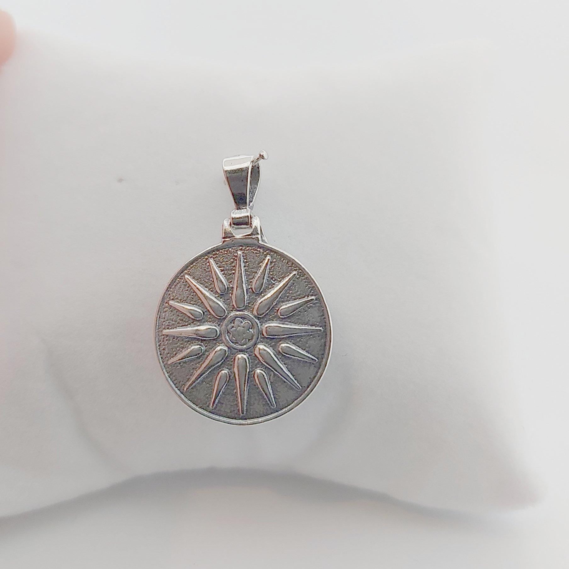 DESIGN ELEMENTS: Features 16 rays radiating from a central rosette pattern, crafted in sterling silver for elegant appeal